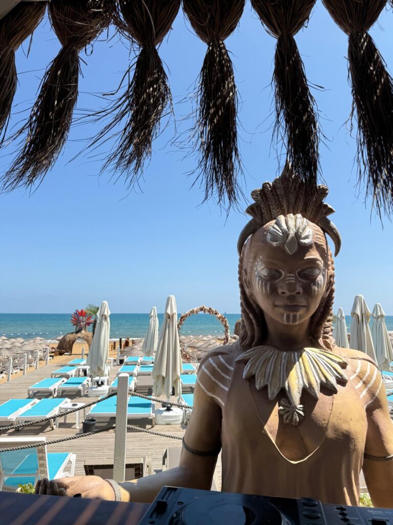 Bu özel sahil alanının en ayırt edici yanlarından biri, yalnızca doğayla değil sanatla da kurduğu derin bağ. Klasik beach club anlayışının çok ötesine geçen bu konseptte, ziyaretçiler yalnızca deniz ve güneşle değil, aynı zamanda ilham verici bir estetik atmosferle buluşuyor.
