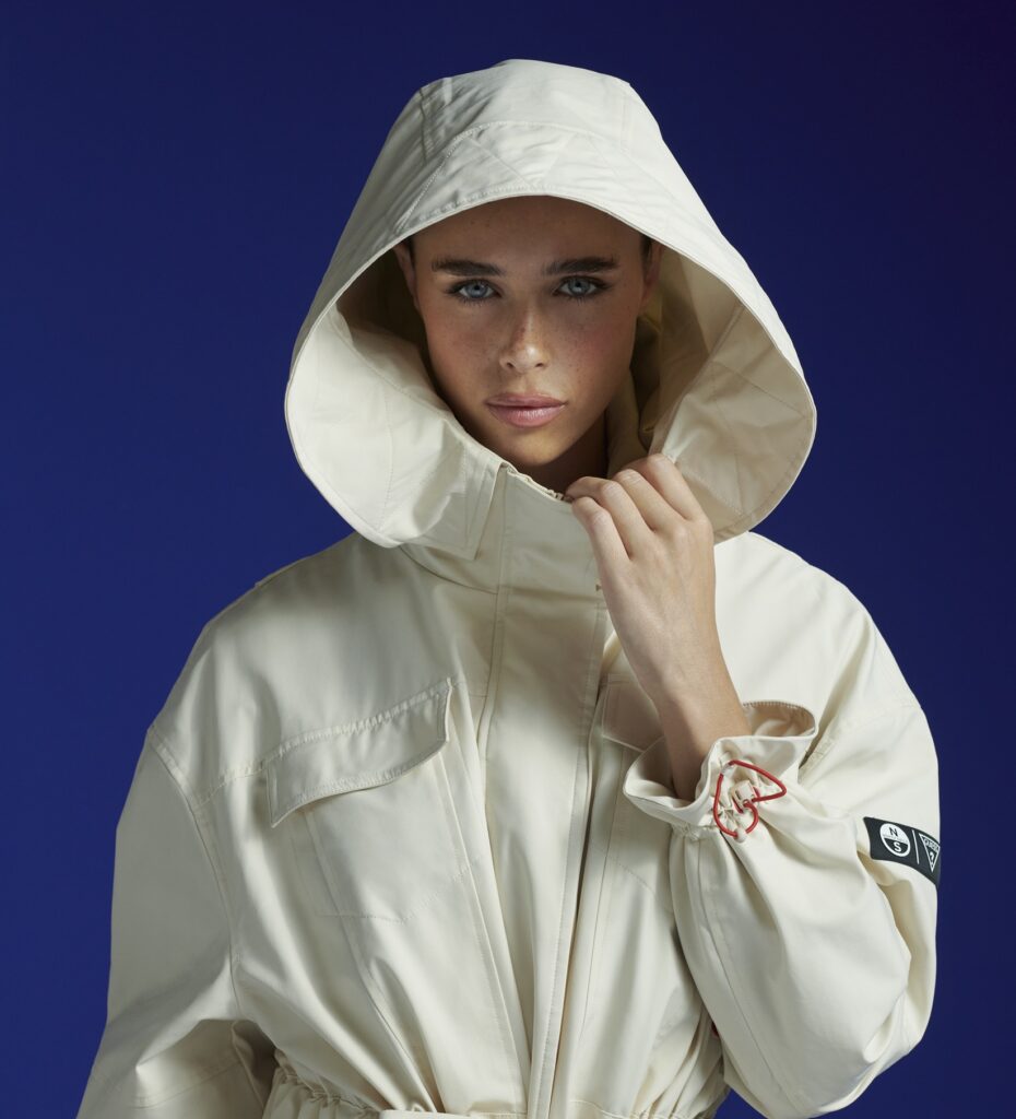 Kadın koleksiyonunda iki dış giyim parçası öne çıkıyor: İlki ultra-hafif uzun parka. İkincisiyse katmanlarıyla ve yansıtıcı detaylarıyla dikkat çeken, denizcilerden ilham alan kapüşonlu kısa ceket. Kullanışlılığa odaklanan bu sezonda kemerli kapitone yelek ve oversize cepli, iki markanın da logosuyla boydan boya süslenmiş crop ceket, işlevsel detayları feminen tasarım dokunuşlarıyla zenginleştiriyor.