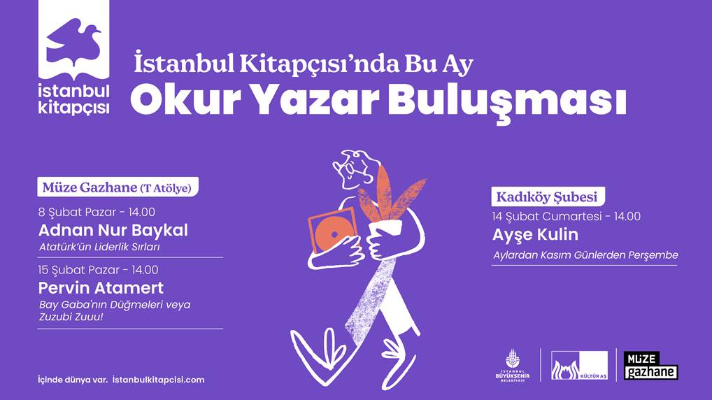 İstanbul Büyükşehir Belediyesi Kültür AŞ’ye bağlı İstanbul Kitapçısı, şubat ayında da okurları yazarlarla buluşturmaya hazırlanıyor. Müze Gazhane ve Kadıköy şubelerinde düzenlenecek Okur Yazar Buluşması kapsamında söyleşiler, imza günleri ve çocuklara özel atölyeler edebiyatseverleri bekliyor.