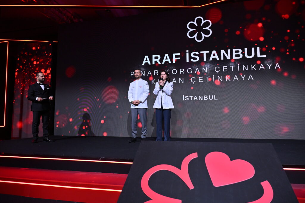İstanbul’da, Şefler Kenan Çetinkaya ve Pınar Korgan Çetinkaya’nın liderliğindeki Araf, açık ateş etrafında tasarlanmış küçük ve karakter dolu tezgah restoranıyla ilk MICHELIN Yıldızını alıyor. Restoran; lezzeti, ürün bütünlüğünü ve tekniği önceliklendiren bir mutfak sunuyor. Samimi ve cesur yaklaşımıyla, Türk lezzetlerinin derinliğini en saf haliyle ortaya koyuyor.