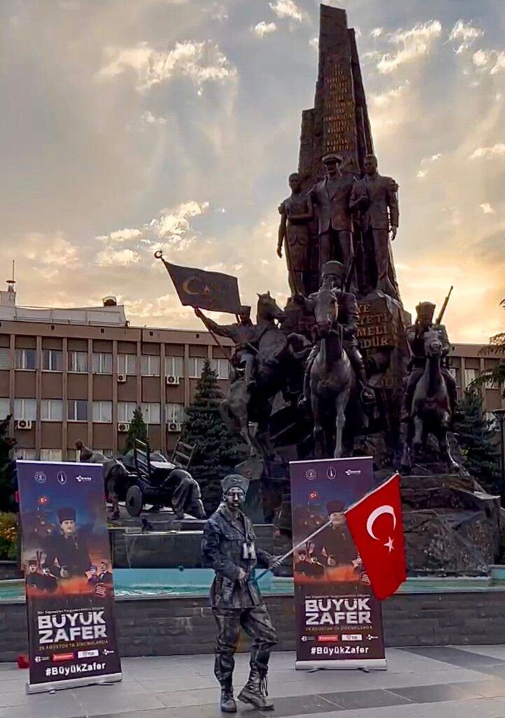 “Büyük Zafer Turnesi”, 9 Ağustos Cumartesi günü İzmir’de büyük ilgi gördü. Afyonkarahisar, Kütahya ve Uşak’ın ardından dördüncü durağı İzmir olan etkinlikte, canlı asker heykel performanslarıyla Büyük Taarruz ‘un ruhu yeniden hayat buldu.