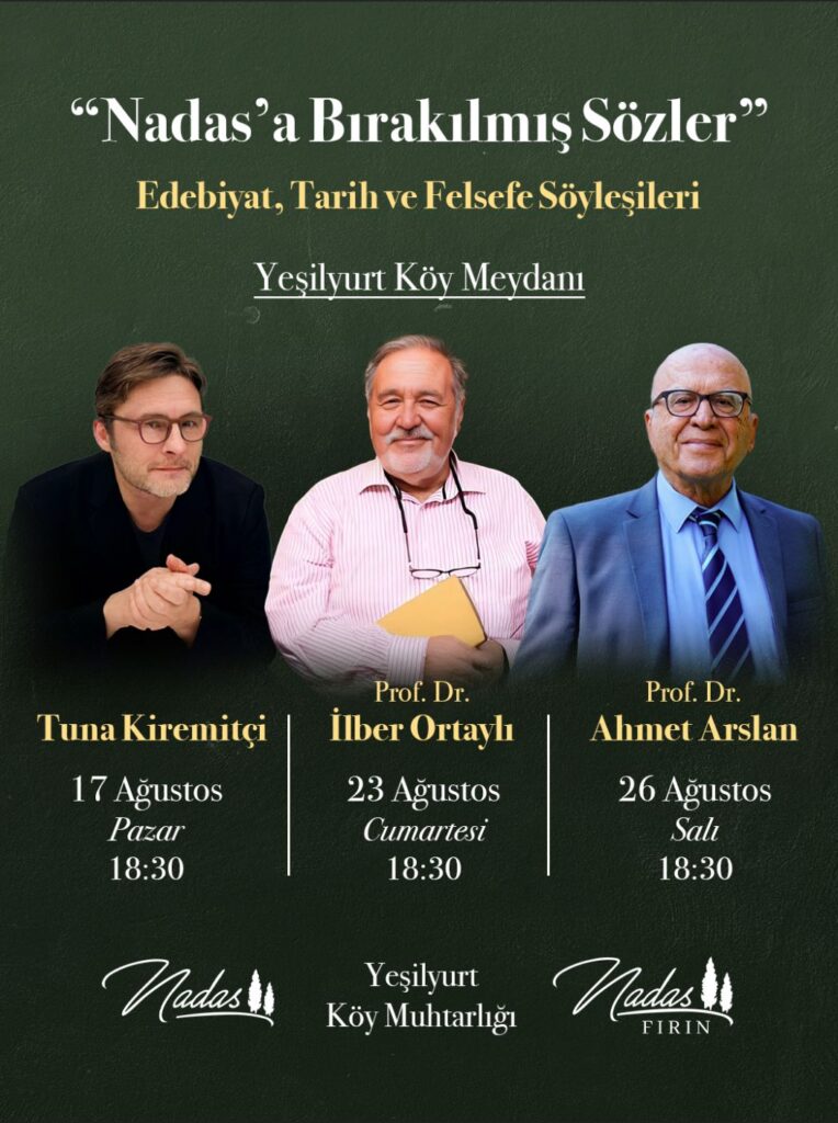 Yeşilyurt Köyü, bu yaz edebiyat, tarih ve felsefe tutkunlarını unutulmaz bir kültür şölenine davet ediyor. Yeşilyurt Köyü Muhtarlığı ve Nadas Fırın iş birliğiyle düzenlenen “Nadasa Bırakılmış Sözler” temalı söyleşi dizisi, Türkiye’nin önde gelen edebiyat, tarih ve felsefecilerini ağırlayacak.